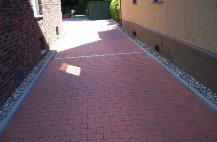 Die Pflasterung erfolgte in einem robusten, großformatigen Klinkerpflaster.