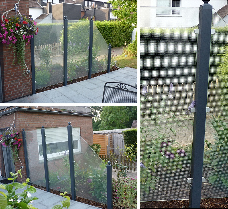 Ein idealer Windschutz für Ihre Terrasse. Durch das Glas wirkt dieser Zaun luftig und hell.